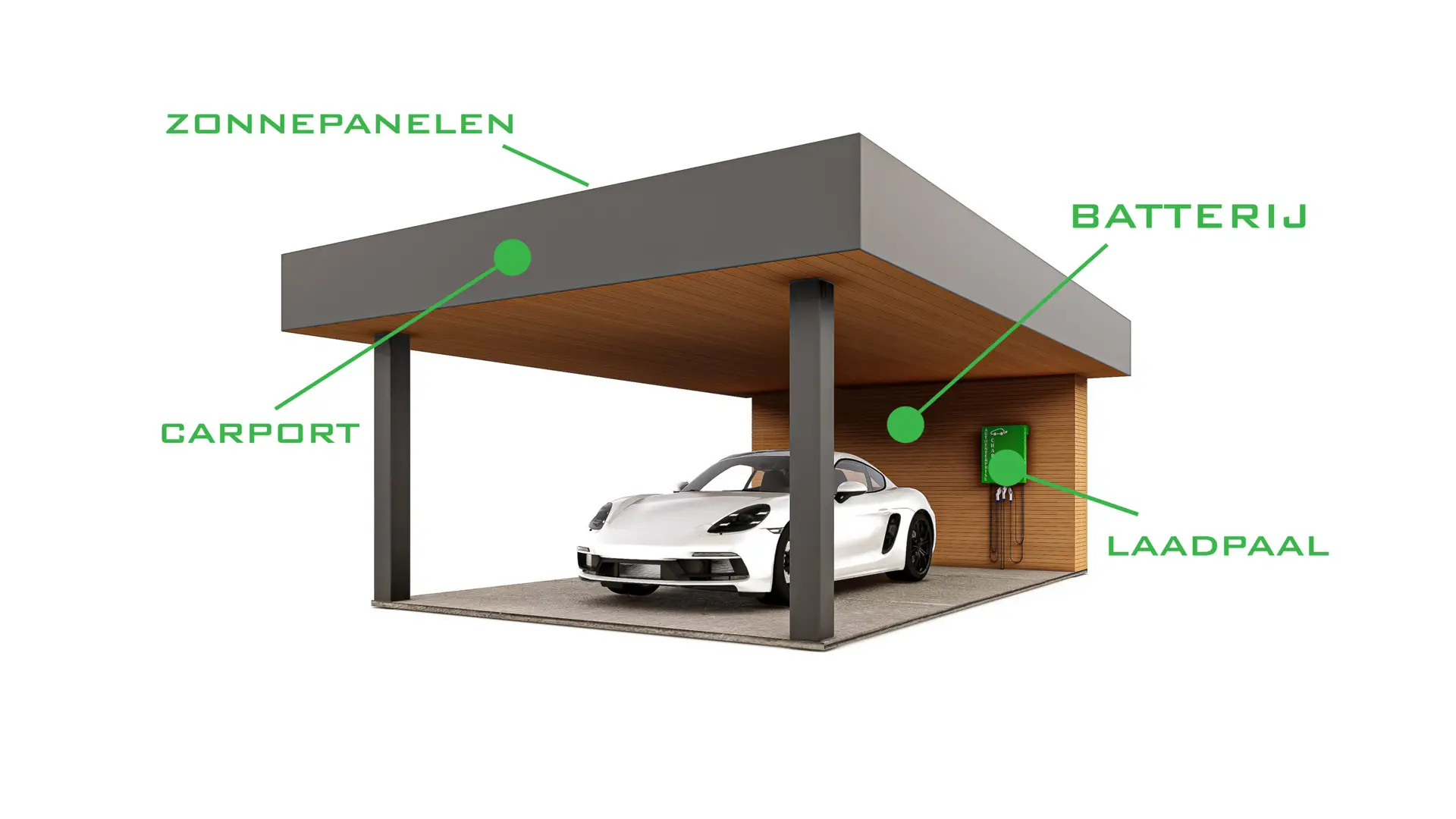 Ook dit kunnen wij voorzien. Onze oplossing werkt zowel met zonnepanelen op het dak als op de carport. We stemmen de slimme sturing af op de volledige installatie, zodat u altijd laadt aan het voordeligste moment.